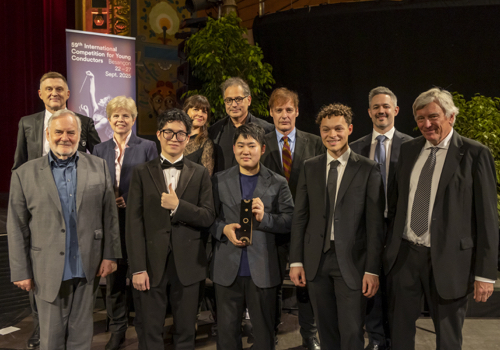 Toutes les récompenses figurant à côté du Grand Prix, Coup de Cœur du Public, Prix de l’Orchestre et Mention spéciale reviennent en effet à Tianyi Xie. Le chef chinois referme l’épreuve finale par une prestation sans doute pas parfaite, mais qui révèle l’immense potentiel d’un musicien encore étudiant au Conservatoire Central de Musique de Beijing dans la classe de Bing Chen. Un jeune homme de 21 ans seulement qui, derrière ses grandes lunettes, cache un sacré tempérament. Tianyi Xie n’a jamais encore dirigé un orchestre du niveau de la Deutsche Radio Philharmonie et impressionne par son autorité. Si on peut lui reprocher une dimension un peu générique encore dans le résultat sonore, il faut saluer l’intense foisonnement qu’il obtient dans Berlioz, sa poigne dans la conduite de la pièce de Campo – qui, à la troisième audition, séduit toujours autant – et la générosité avec laquelle il fait sonner Prokofiev. Une baguette d’avenir à suivre de près !