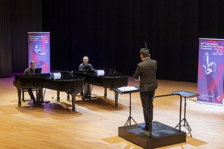 Un concours tel que celui qui s’est tenu du 22 au 27 septembre n’est que la partie visible d’un iceberg de travail et de préparation. 300 dossiers de candidature pour cette 59e édition : le chiffre témoigne de l’attrait que la compétition bisontine continue d’exercer partout dans le monde. Il donne aussi une idée de l’ampleur du travail de présélection qui a été accompli en amont par les chefs Jean-François Verdier (directeur musical d’un Orchestre Victor Hugo au rôle central dans le déroulement du Concours) et Jean-Claude Picard (pour les présélections à Montréal uniquement), et par Jaewon Kim (violoniste supersoliste à l’Orchestre national du Capitole). On s’en voudrait de les oublier – il faut aussi tirer un grand coup de chapeau aux pianistes David Berdery et Paul Montag ou Christophe Manien et Emmanuel Christien qui, selon les villes vers lesquelles les candidats convergeaient (Besançon, Séoul, Paris, Berlin, Montréal), ont fait montre d’une implication exemplaire (nous avons pu le constater, le 24 avril à la salle Cortot, en observant C. Manien et E. Christien).