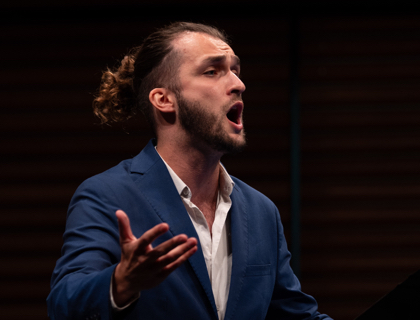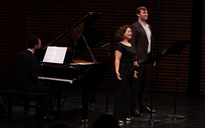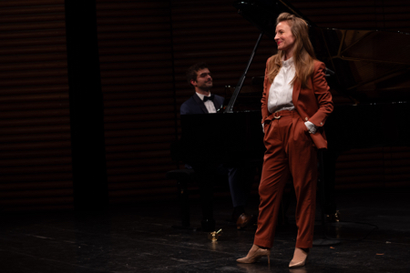 Viennent ensuite cinq duos où s’illustre la Promotion 2025-26 (1). Du temps où les jeunes chanteurs devaient encore présenter en solo un air en français, on a souvent souligné combien il était difficile pour les contre-ténors de trouver autre chose à interpréter qu’un extrait de l’Orphée de Gluck, non sans tricher un peu puisque la version française de cet opéra était destinée à un ténor ou, dans sa révision par Berlioz, à une mezzo. Le problème est en partie résolu, l’obligation du français ayant disparu, mais en partie seulement, car le final du Couronnement de Poppée accompagné au piano dérange désormais un peu nos oreilles. On s’étonne davantage du décalage en termes de niveau entre les différents morceaux : le duo Suzanne-Comtesse des Noces de Figaro paraît bref et sans grandes difficultés, comparé aux Rossini et Donizetti dont est composé le reste du programme.