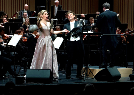 Conduit par le fidèle Jochen Rieder, toujours avec une certaine mollesse, l’Orchestre de Baden-Baden a ensuite enchaîné bravement cinq bis choisis avec finesse : « Meine Lippen, sie küssen so heiss » (Giuditta de Lehár) pour Madame, endiablée, « Liebe singt ihr Zauberlied » (Kaiserin Josephine de Kálmán) pour Monsieur, follement romantique, ainsi que deux duos, dont le voluptueux et quasi hollywoodien « Wie die blaue Sommernacht » de Giuditta (Lehár) accompagné par quelques pas de valse… Du charme, du talent, du bonheur, que demander de plus ?