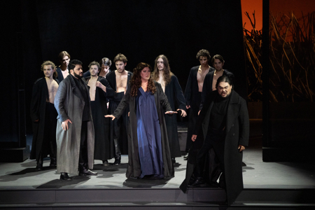Plongée dans l’obscurité, dans un décor essentiellement constitué de pans de murs métalliques ouverts à de rares moments sur quelque chemin hérissé de joncs, l’intrigue suit son cours sans démériter. Bandes rivales, une femme aimée par deux hommes qui se détestent alors qu’ils sont frères et au milieu une gitane qui ne peut révéler la vérité, tous les éléments sont réunis pour cette équation verdienne tirée par les cheveux mais à la musique toujours aussi galvanisante.