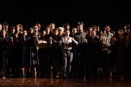 L’orchestre, dépourvu de cuivres et de percussions, déploie tout son raffinement : flûtes incandescentes, tendre moelleux des cordes, sérénité profonde du violoncelle. La qualité des pupitres contribue à la réussite d’un spectacle qui, débuté dans la ferveur, s’achève presque dans le délire. Sont successivement salués la tendre Olivia Boen, la tranchante Adriana Bignagni Lesca, la fervente Deepa Johnny. Membre de la Troupe lyrique de l’Opéra de Paris, Ilanah Lobel-Torres illumine les ensembles vocaux de sa puissance. Amin Ahangaran, Davóne Tines et Nicolas Cavallier se partagent l’assise grave d’une polyphonie tuilée comme un motet Renaissance.