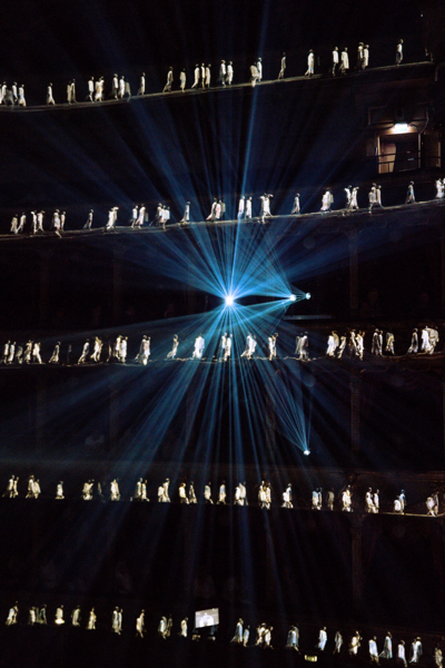 Au pupitre, Léo Warynski (2) signe, lui aussi, une réelle performance car la partition de Philip Glass n’offre pratiquement jamais de temps de pause, même minime, obligeant le chef à maintenir une pression constante sur les instrumentistes afin de ne pas connaître de variation dans l’intensité de la musique et ses tempi. Une performance à laquelle il convient évidemment d’associer l’Orchestre philharmonique de Nice mais aussi le Chœur de l’Opéra de Nice totalement investis dans cette production et dont la prestation fut majuscule.
