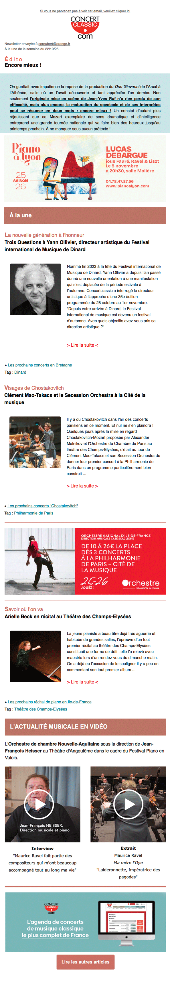 - Les derniers articles, comptes-rendus, interviews, etc. sur l'actualité des concerts de musique classique.